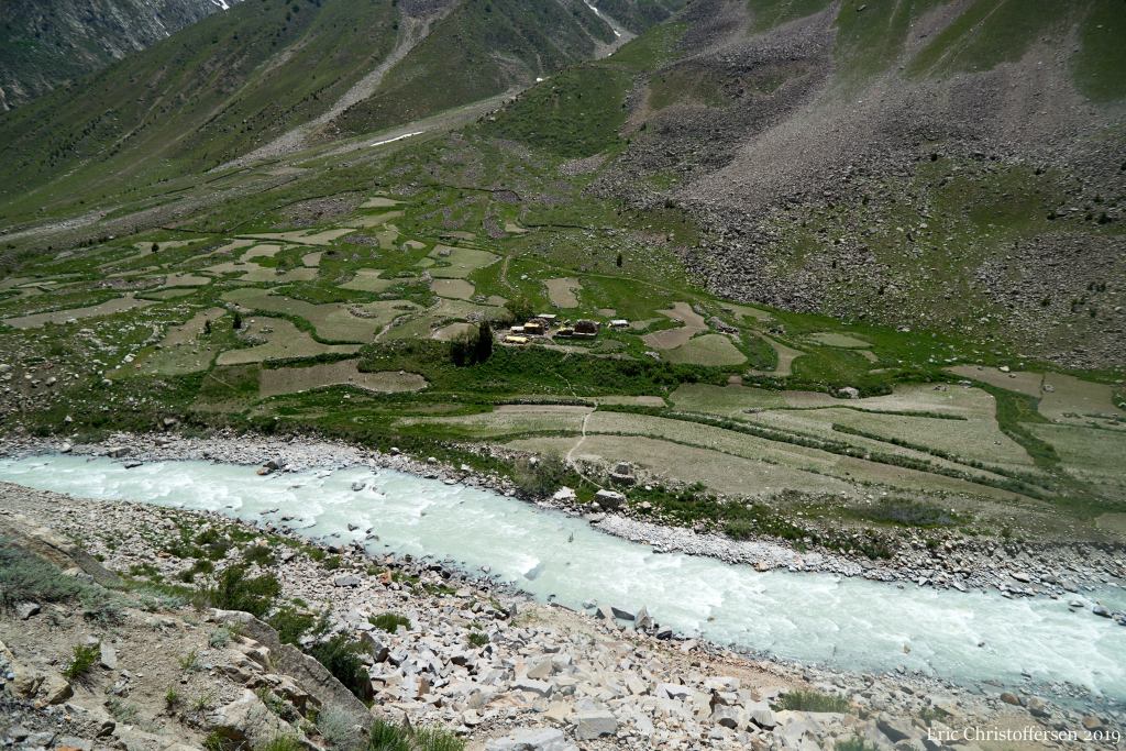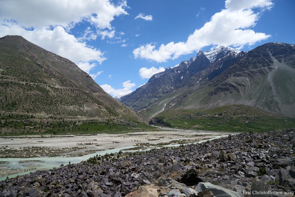 Bridge at Darcha is off to the left, this is the view straight up the Bhaga river towards Baralachala.