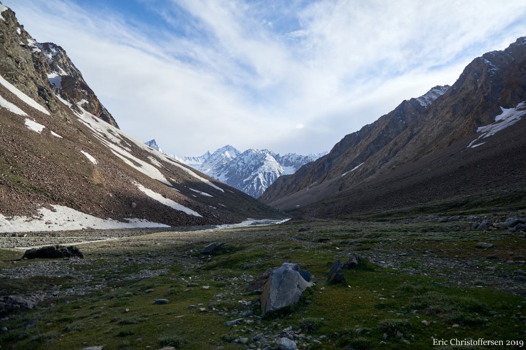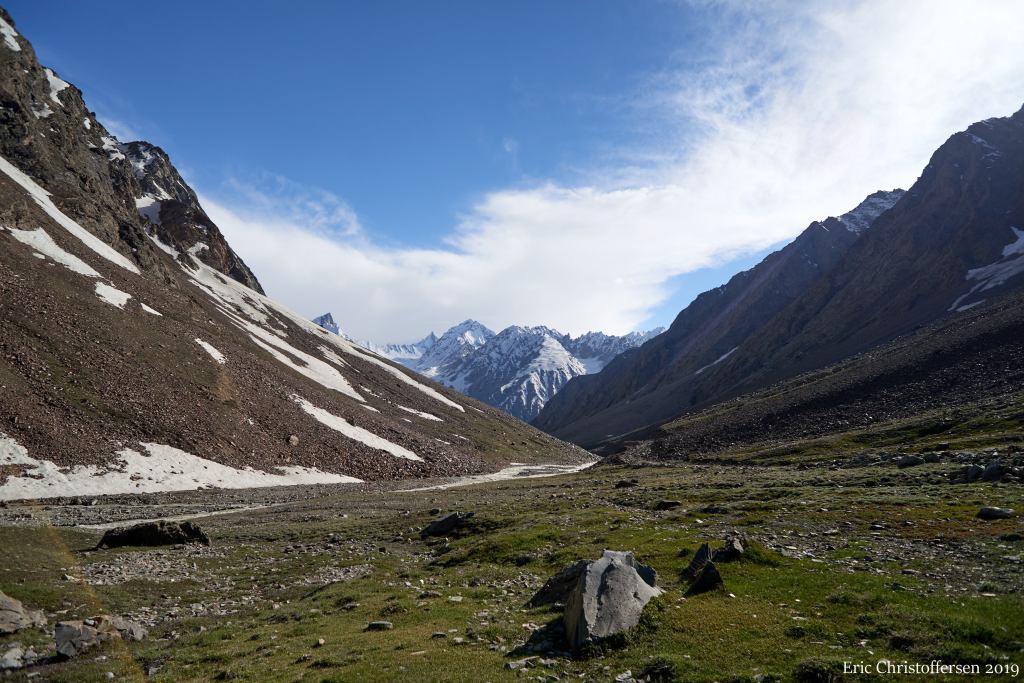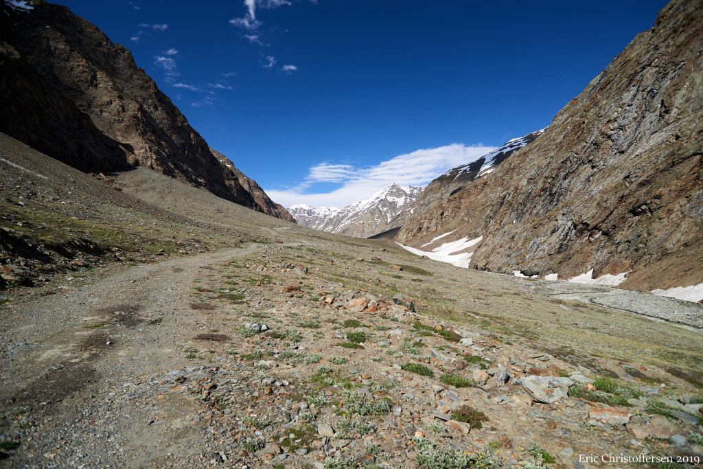 And finally I cross a hill and can see the side valley that leads to shingo la. The scar of zig-zagged road is clearly visible from everywhere.