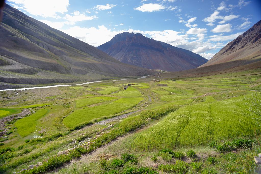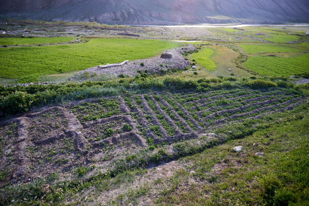Kargiakh 2018: Vehicles proceeding below Kargiakh for first time in 2018. At this point the bulldozer is towing the dump trucks through a big swamp created when they drove through the irrigation canal.