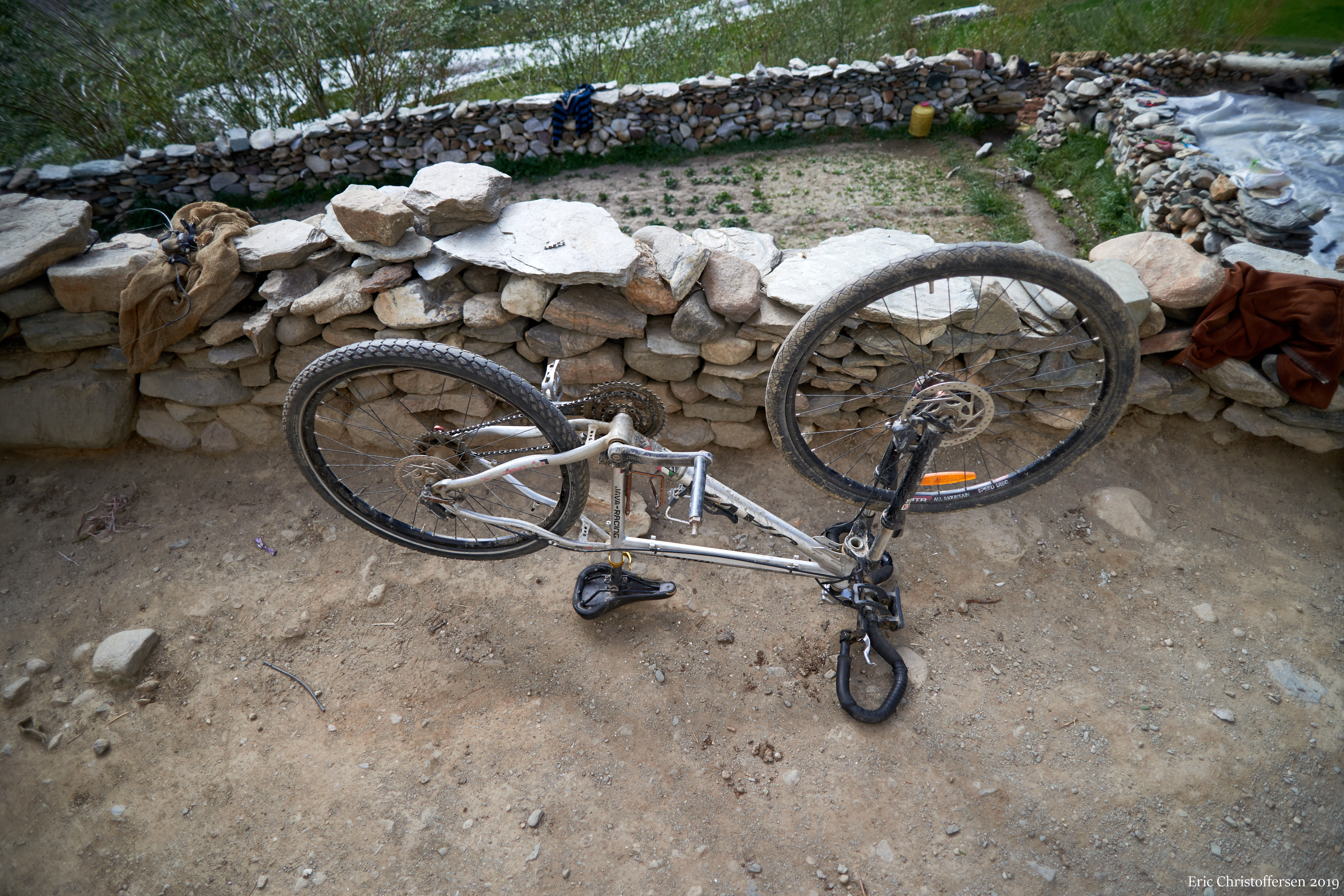 Was lounging off on the lower side of the village, leaning against a wall. A local walks by my bike… He grabs the bars and works the brake levers. This is fine. Everyone does that. Then he steps back and looks at the bike. He reaches over and hefts it, weighing it. This is fine too. Folks are curious.