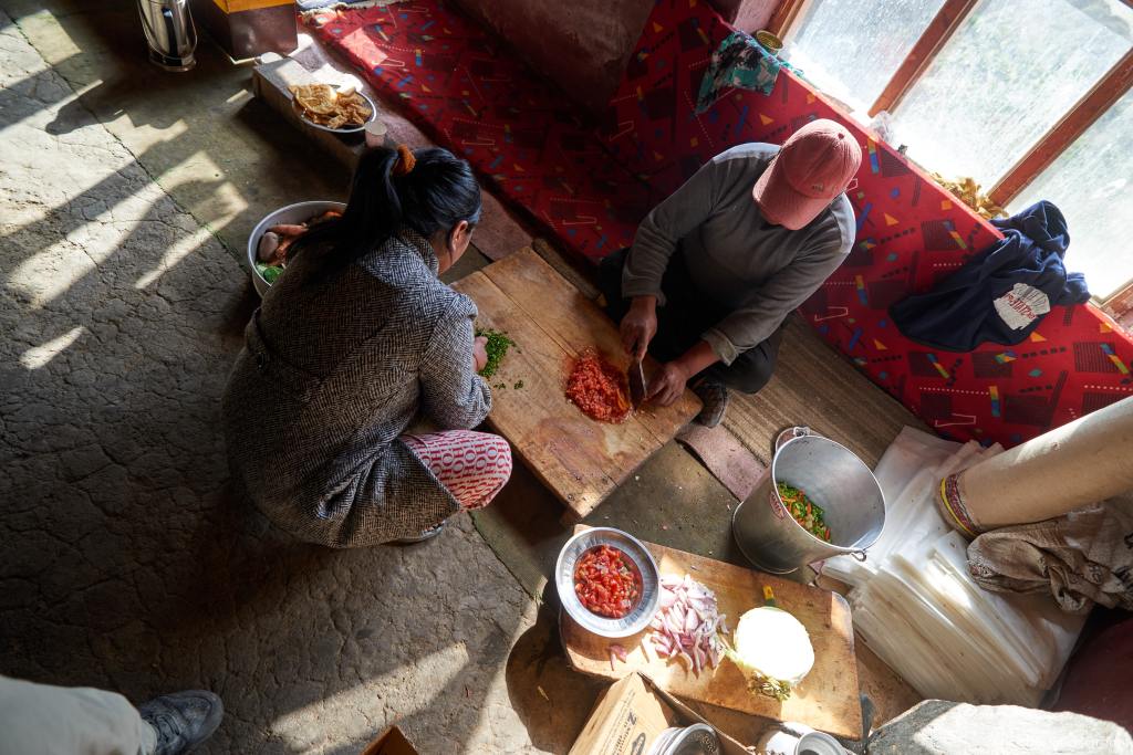 Head down for breakfast and kitchen is just getting started. I even get to help chop vegetables. Volunteers arrive by car to help prepare for the big breakfast for the monks. Two people work full time to produce a huge turine of Tsamik (the local tsampa.) The monks eat well!